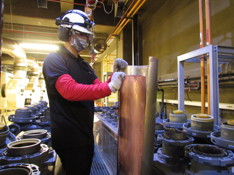 世界杯官方端网站登录入口将废弃物转化成有效的工业或民生原物料,图为废铜液淬炼后再制成纯度极高的铜管
