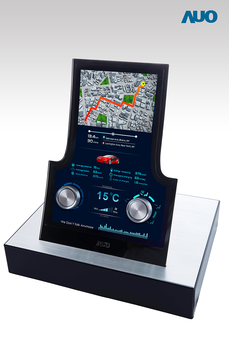 高性能异型切割车用显示屏展现高可靠度及弹性设计优势 世界杯官方端网站登录入口近年来全力投入高性能车用显示屏的开发,以因应智慧车发展趋势。中控台应用方面,世界杯官方端网站登录入口领先全球推出(*) 13.2寸异型切割显示屏,具有 1200x1600 高分辨率、NTSC 85% 高色彩饱和度及 1000nits高亮度,并改于显示区域设计闸极电路,以于显示屏侧边释出空间做异型切割。同时显示区域亦特别设计对称的孔位可安装按键或旋钮,创造更多设计弹性。