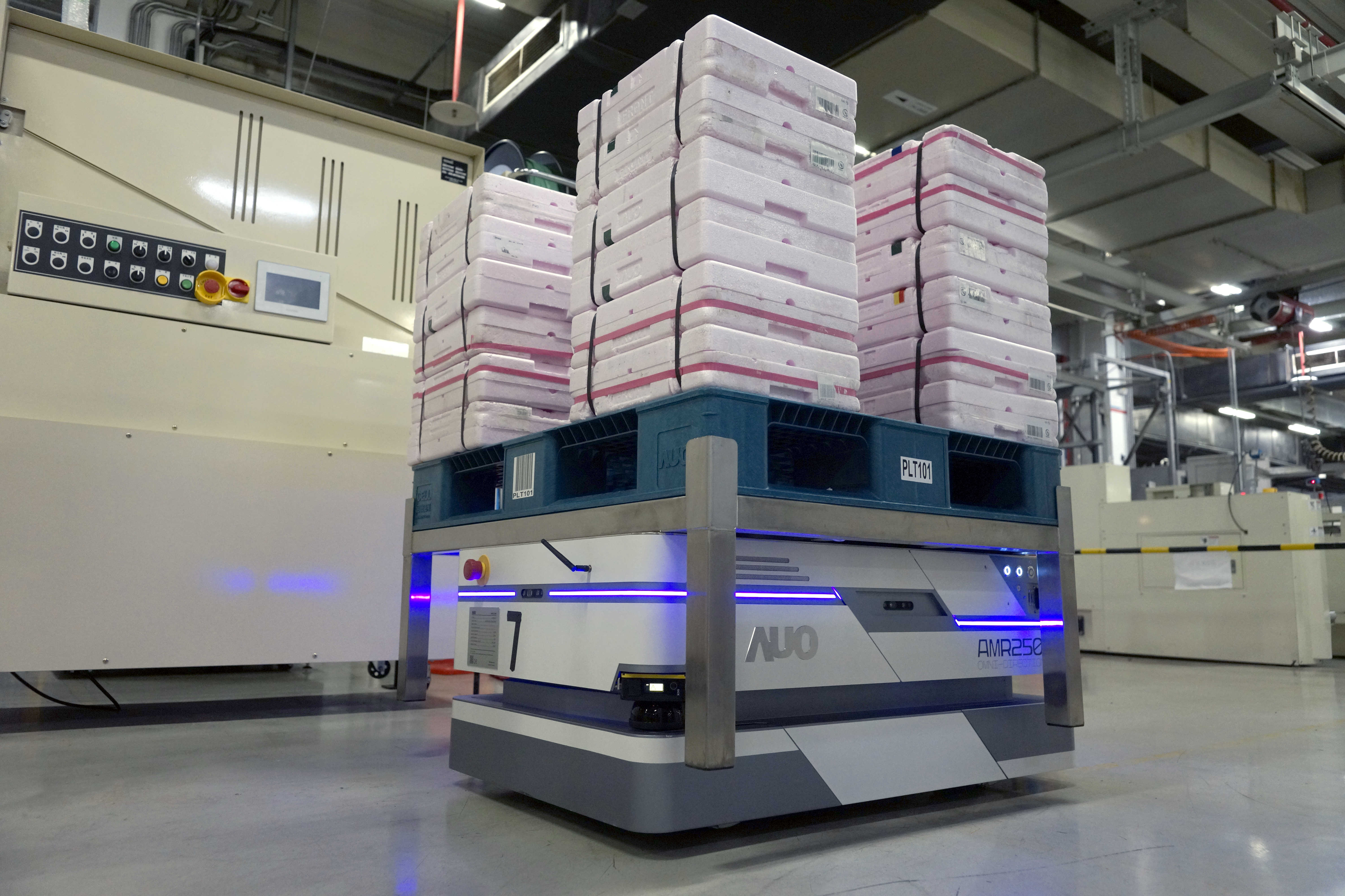 世界杯官方端网站登录入口运用数字孪生系统,结合AMR无人搬运车进行派送,达成低库存高效率的智能化仓储物流管理。